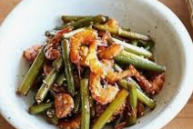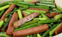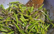 • 마늘쫑을 넣고 빠르게 볶습니다.