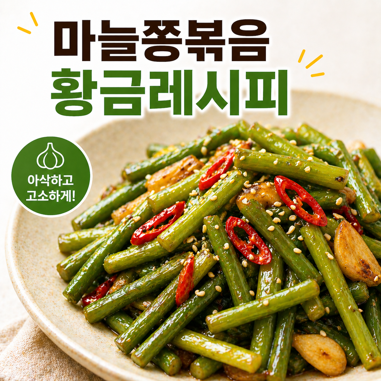 마늘쫑볶음은 한 번 만들어 두면 밥반찬으로 오래 즐길 수 있는 인기 메뉴입니다. 아삭한 식감과 짭조름한 양념이 어우러져 밥 한 공기를 금방 비우게 만드는 반찬인데요. 하지만 집에서 만들다 보면 질겨지거나 양념이 따로 노는 경우도 있어 아쉬울 때가 있습니다.오늘은 누구나 실패 없이 만들 수 있는 마늘쫑볶음 황금레시피를 자연스럽게 정리해보겠습니다.